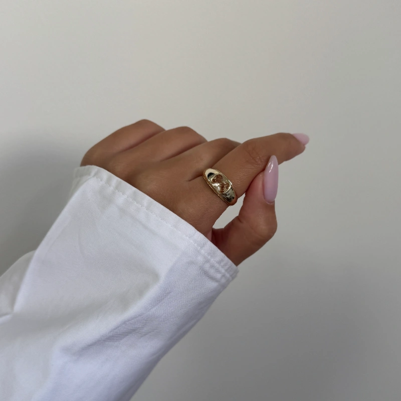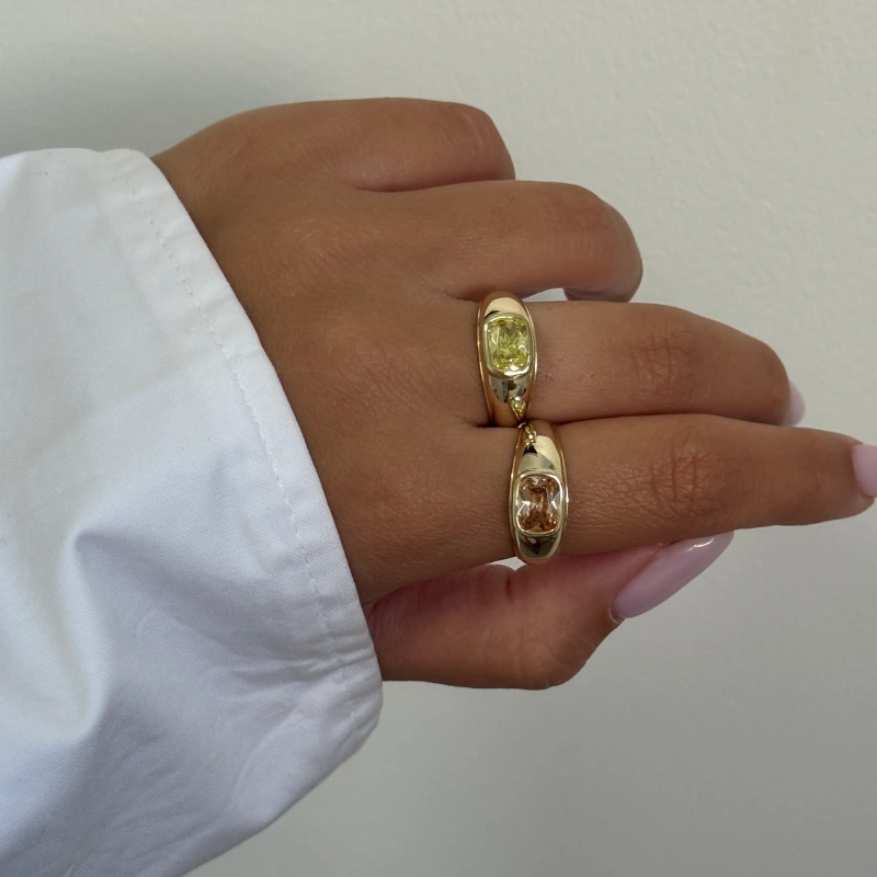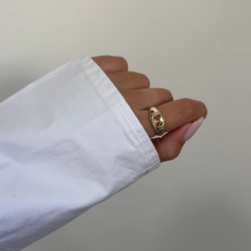 טבעת זהב עם אבן נוצצת בגוון שמפניה הטבעת המושלמת שתוסיף לך צבע ואנרגיה לכל לוק.