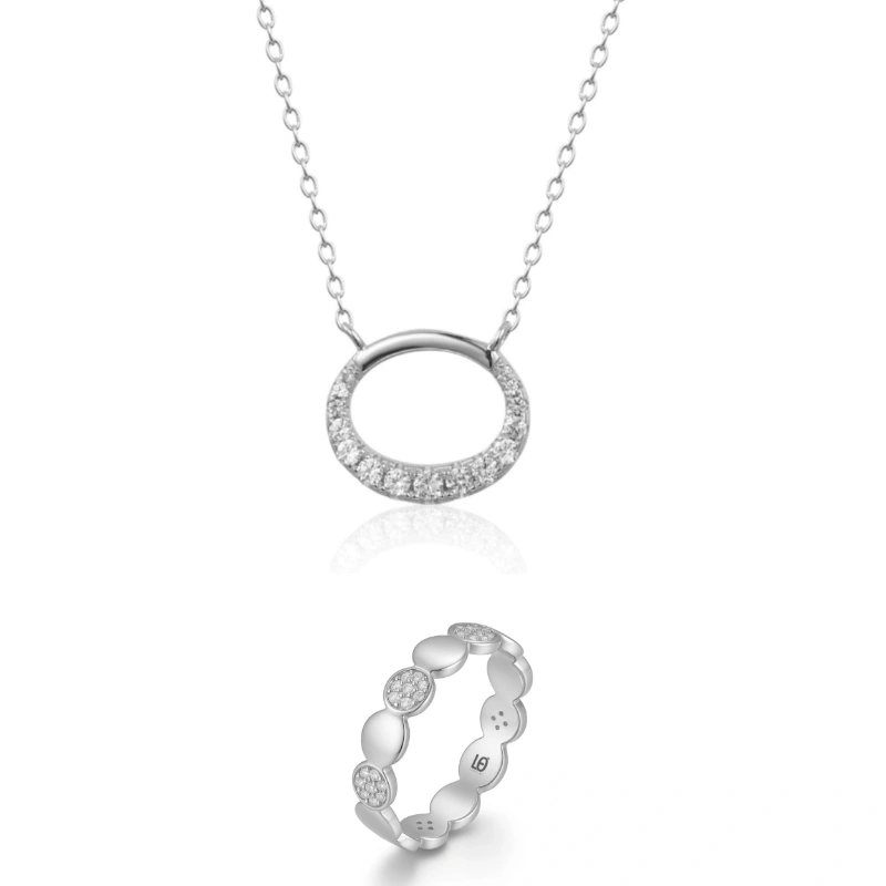 סט אלגנטי ועדין בעיצוב שמשלב יוקרה ופשטות בצורה מושלמת. הסט מעניק מראה קלאסי ונקי ונשי כזה שמתאים לכל לוק, מהיום־יום ועד לאירועים מיוחדים. הבחירה המושלמת למי שמעדיפה יופי טבעי עם נוכחות יוקרתית.