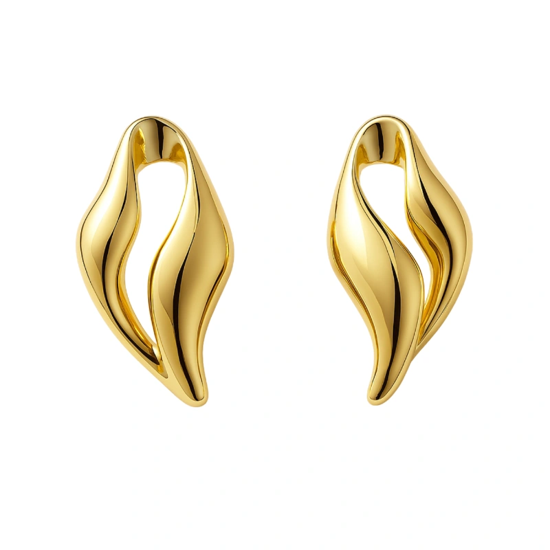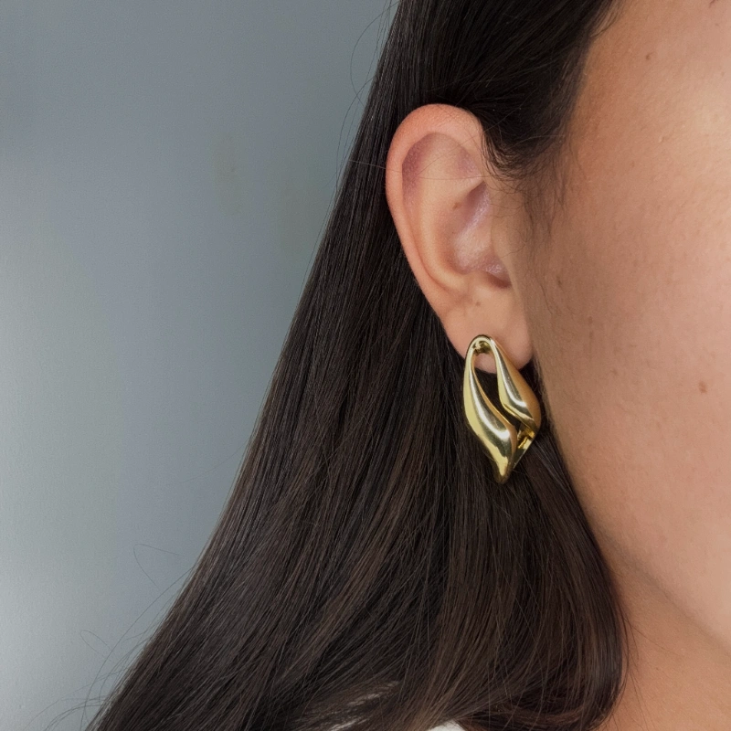 עגילים מעוצבים בקווים גולשים ואלגנטיים, בעיצוב יוקרתי עם גימור מבריק, מושלם לכל לוק. העגילים עשויים בעבודת יד.