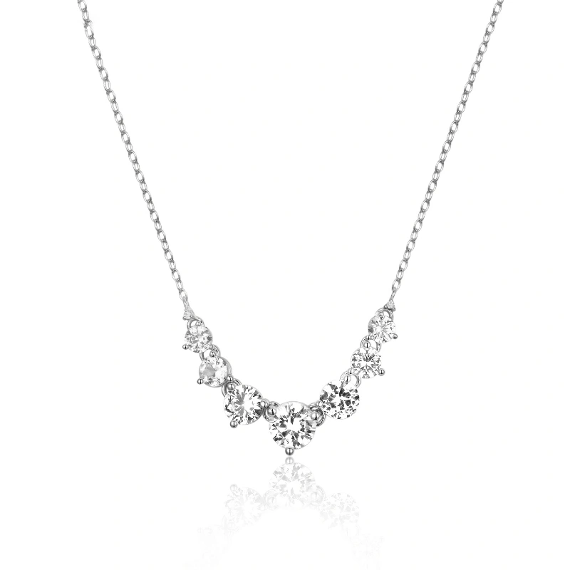 שרשרת כסף אלגנטית משובצת בזירקונים מדורגים ליצירת מראה זוהר ומדויק. שרשרת מושלמת לערב, לאירועים או להוספת טאץ’ אלגנטי גם למראה יומיומי. השרשרת עשויה בעבודת יד.